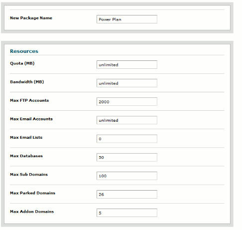 When you are finished setting the package resource limits click Add to add the package.